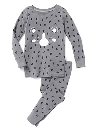 She'll love the super cute cat theme along with the comfort of the soft and stretchy cotton. Gray with a Leopard print throughout. Rib-knit collar and cuff trim. Coordinating pajama pants with an elasticized waistband for a custom fit. Of a soft 100% cotton, to be worn snug-fitting.