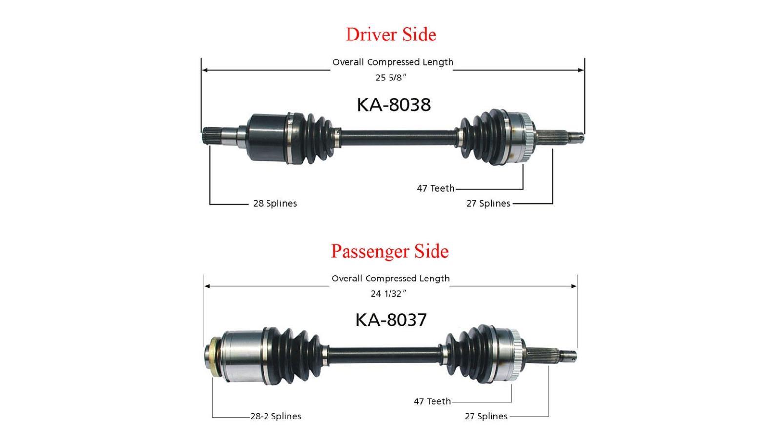 1 x Part # KA-8037 Passenger Side Front Shaft