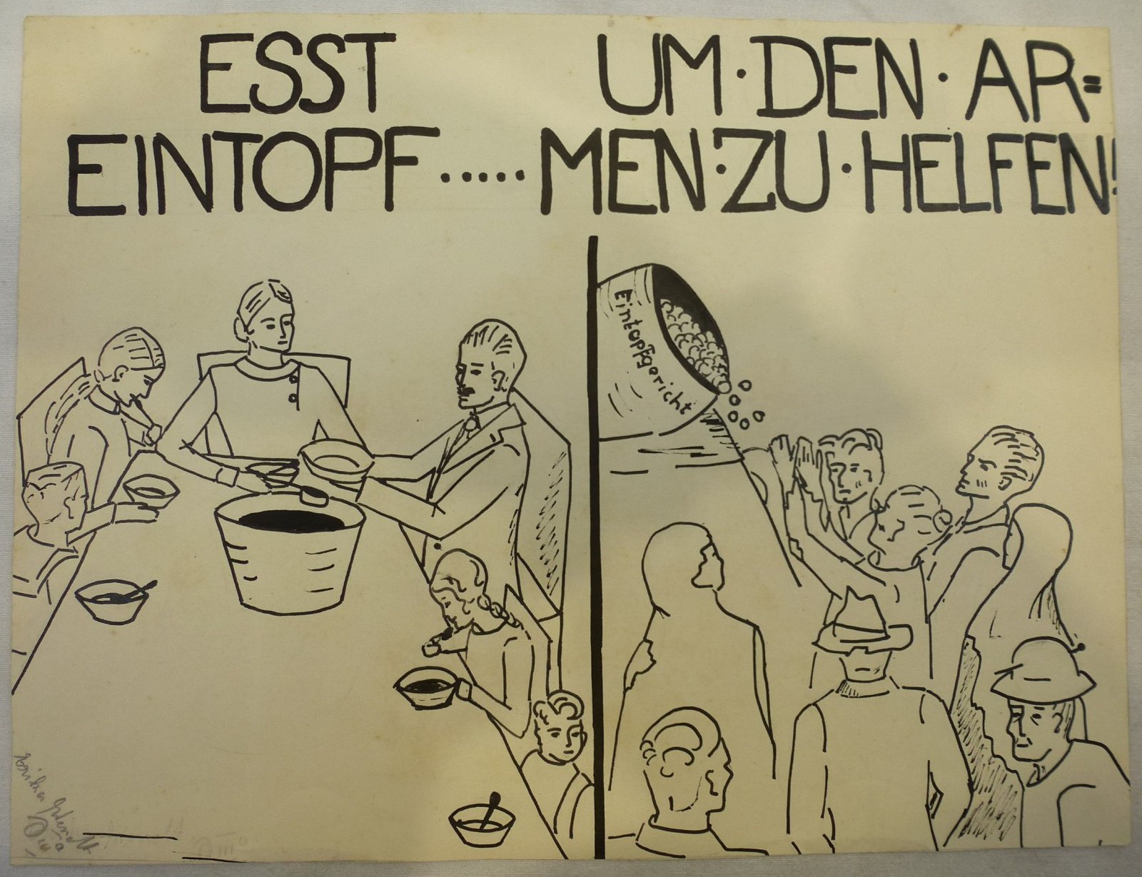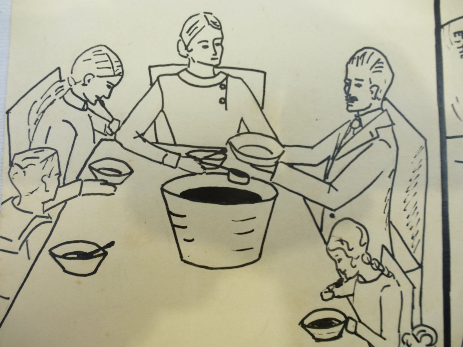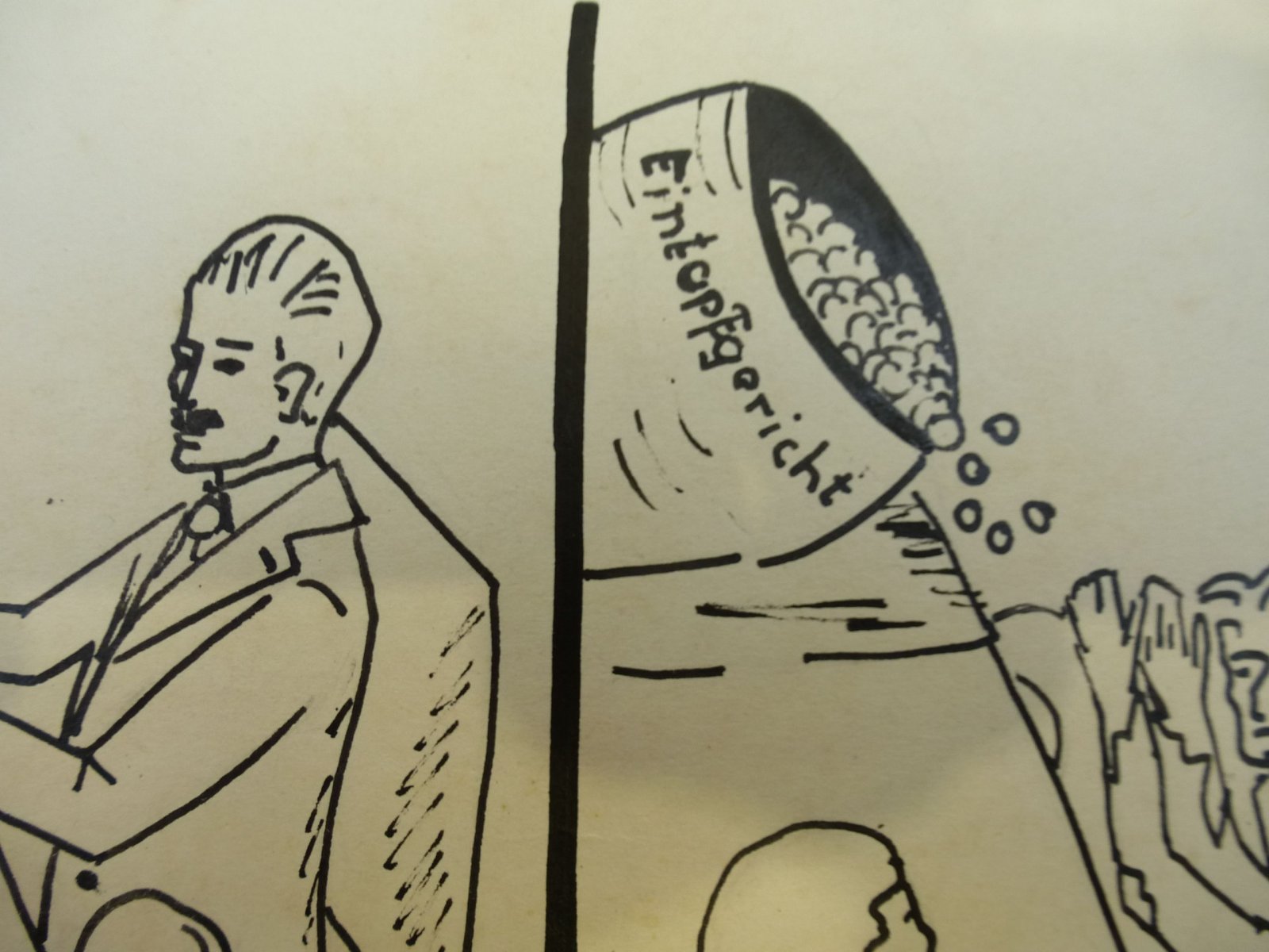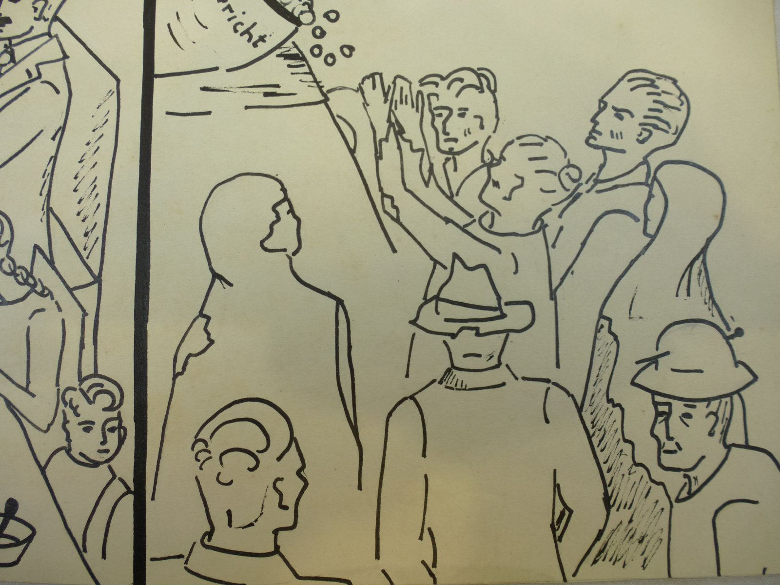 Die Zeichnung ist leicht vergilbt und weist Flecken auf.