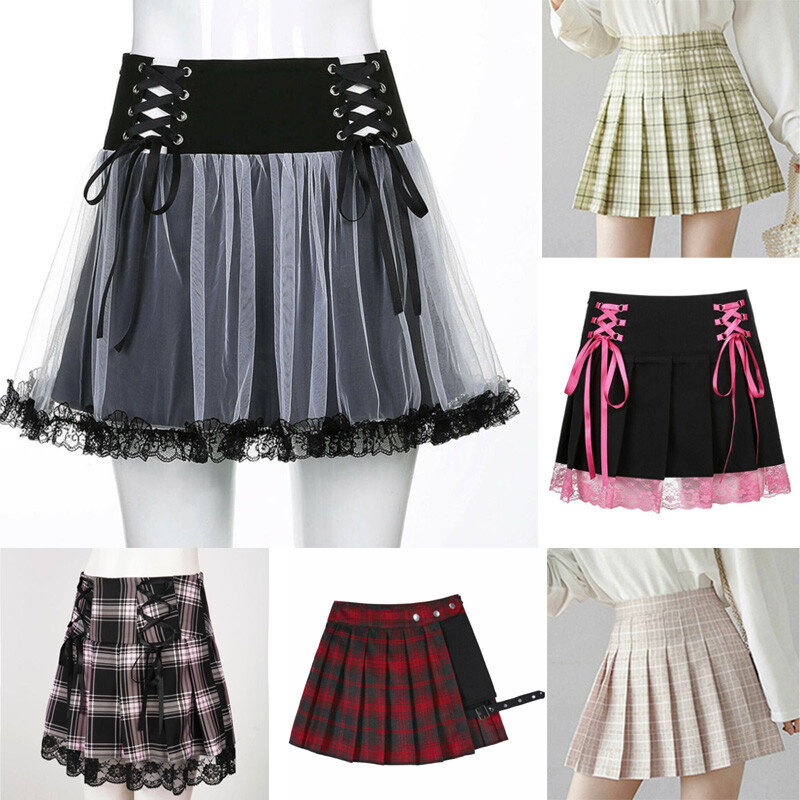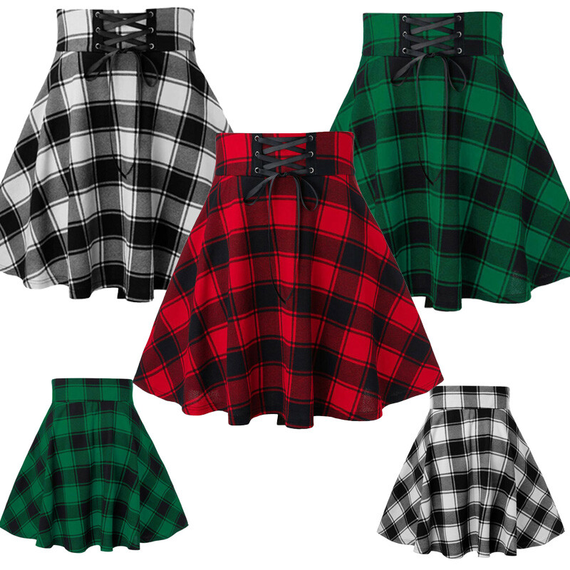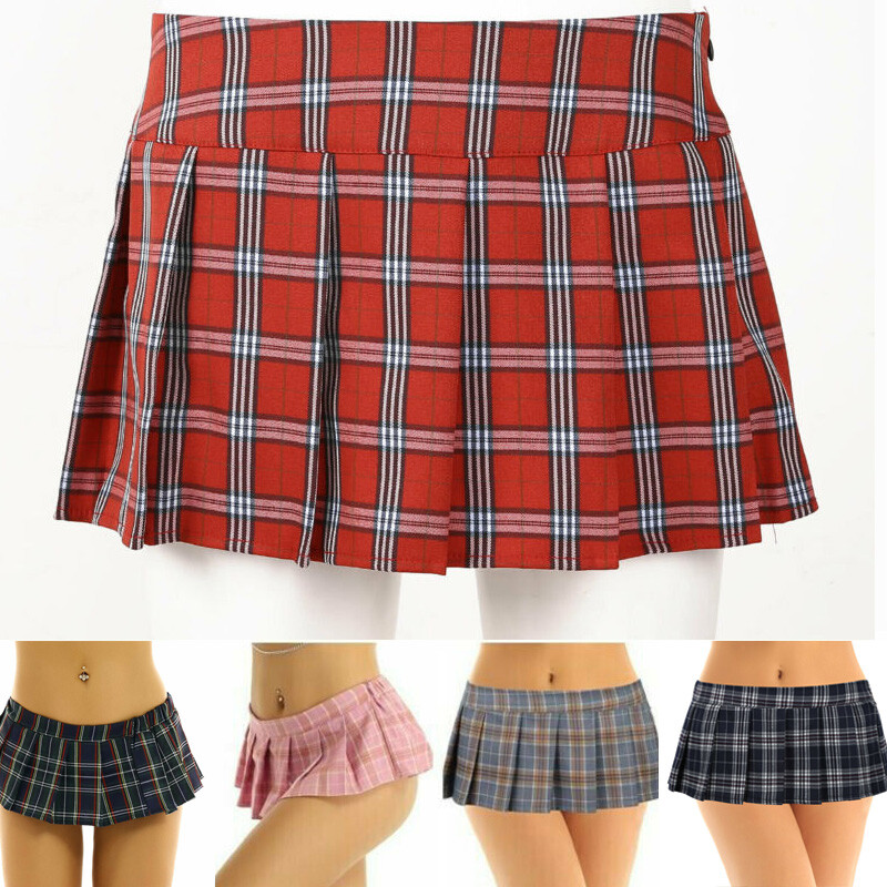 Women’s Schoolgirl Mini Skirt, Pull On Closure.