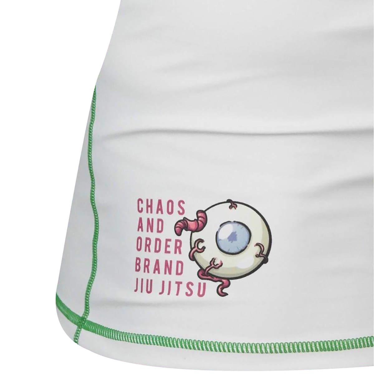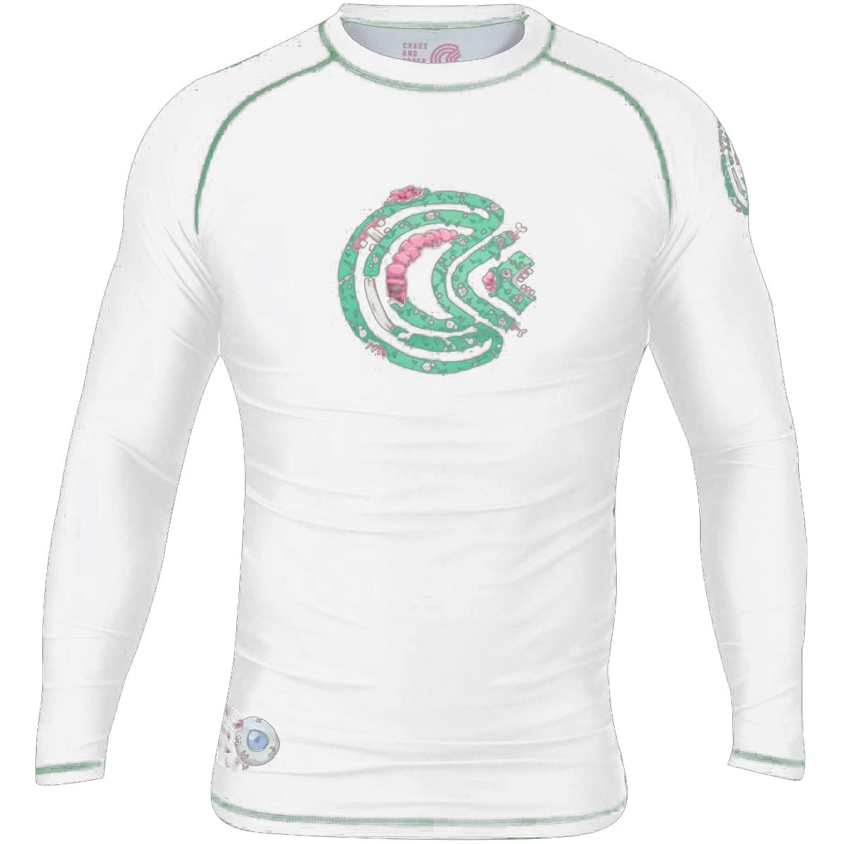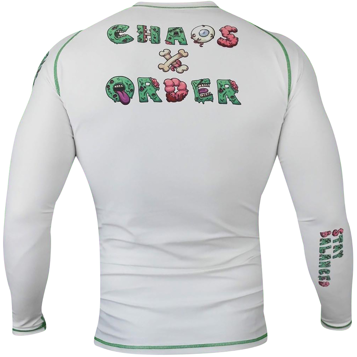 The Chaos and Order Z-Series Premium Long Sleeve Jiu-Jitsu Rashguard features a vibrant "zombified" adaptation of the logo with text to match! With fully sublimated designs, these colors will not fade. This rashguard is made from a high quality polyester/spandex blend and features extremely durable flatlock stitching.