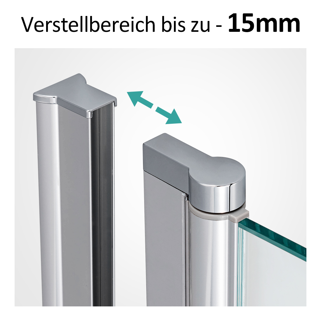 【Verstellbereich bis zu 15 mm】Wandprofile aus hochwertigem Aluminium mit ca. 15mm Verstellbereich. Daher ist die Duschwand auch an schiefen Wänden und Boden montierbar.