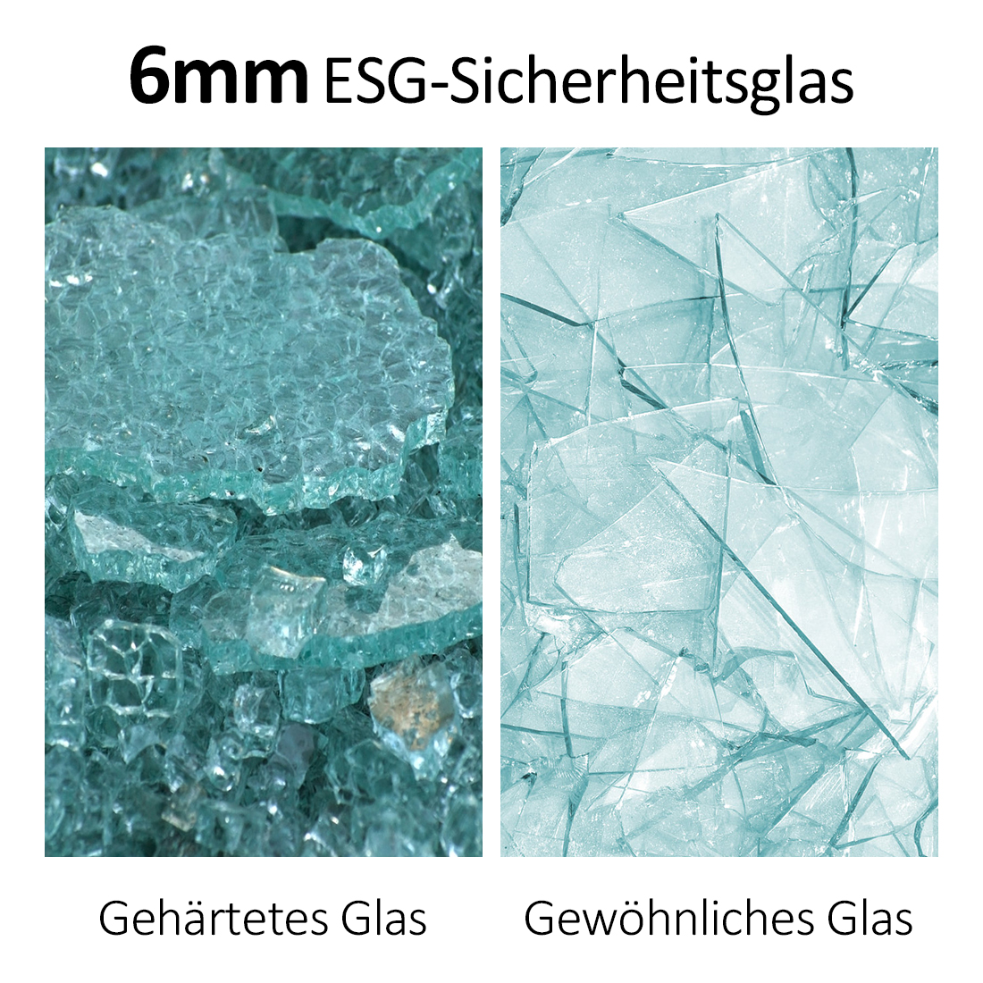 【Sicherheitsglas】Hochwertiges 6 mm Einscheiben-Sicherheitsglas (ESG) klar und hell, nach DIN EN 12150/CE geprüft: höchste Sicherheit im privaten Haushalt mit Kindern.