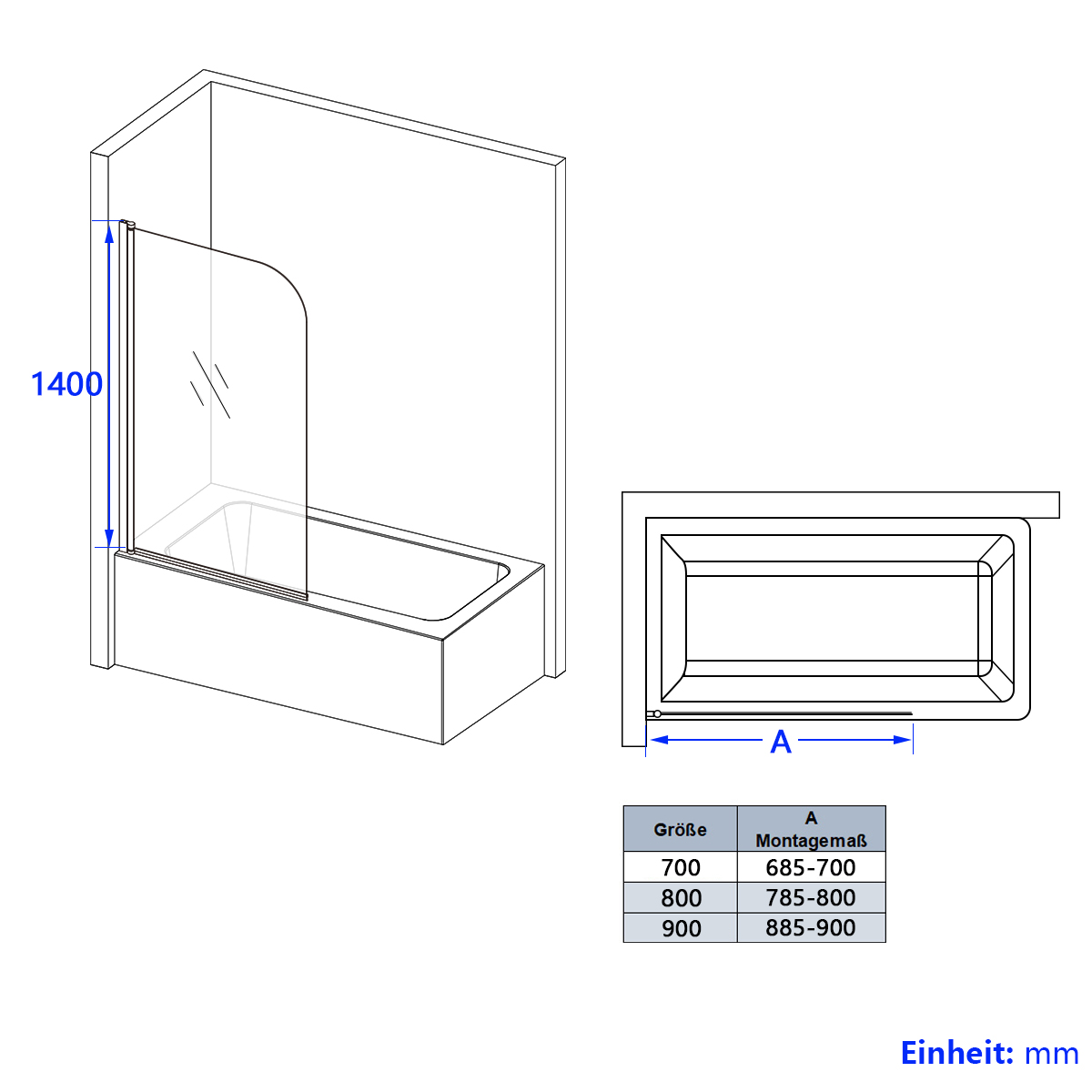 • Badewannenaufsatz mit elegantem rahmenlosen Design