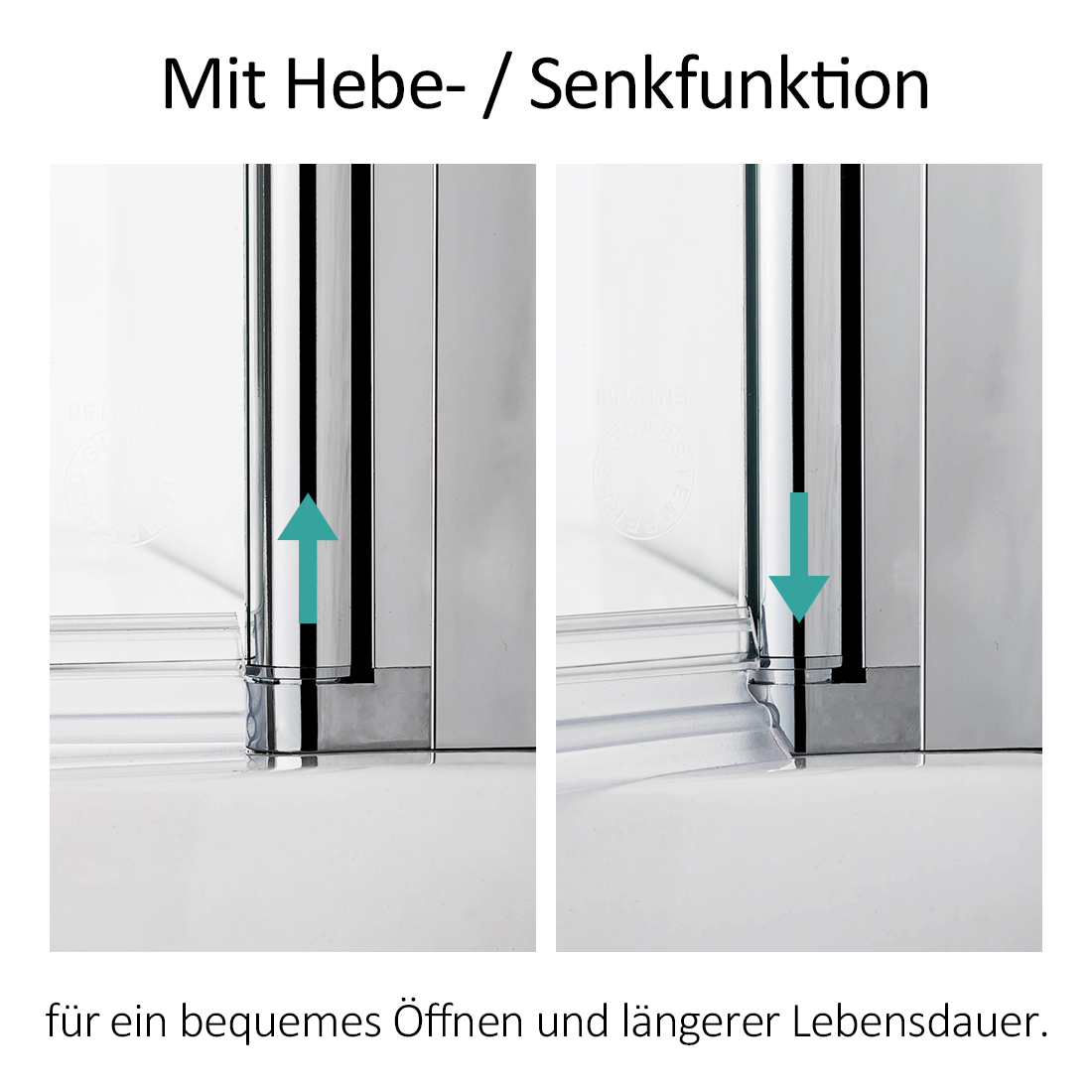 【Hebe-, und Senk-Funktion】Automatische Hebe-/ Senkfunktion beim Öffnen/ Schließen. Die Hebe-/ Senkmechanik ermöglicht eine leichte Türführung und justiert die Tür beim Öffnen.