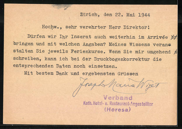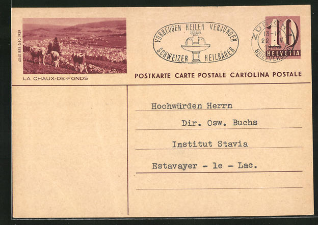 circulée en 1944, pli en haut waagerecht u. gauche en bas, pli au coin gauche en bas, verso sans imprimé, sinon bon état