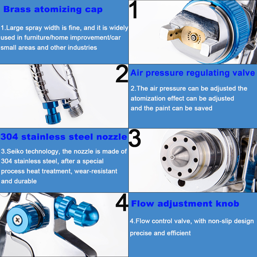Environmental protection and paint saving, using 2.0Bar low pressure can achieve good atomization effect and reduce excessive atomization.