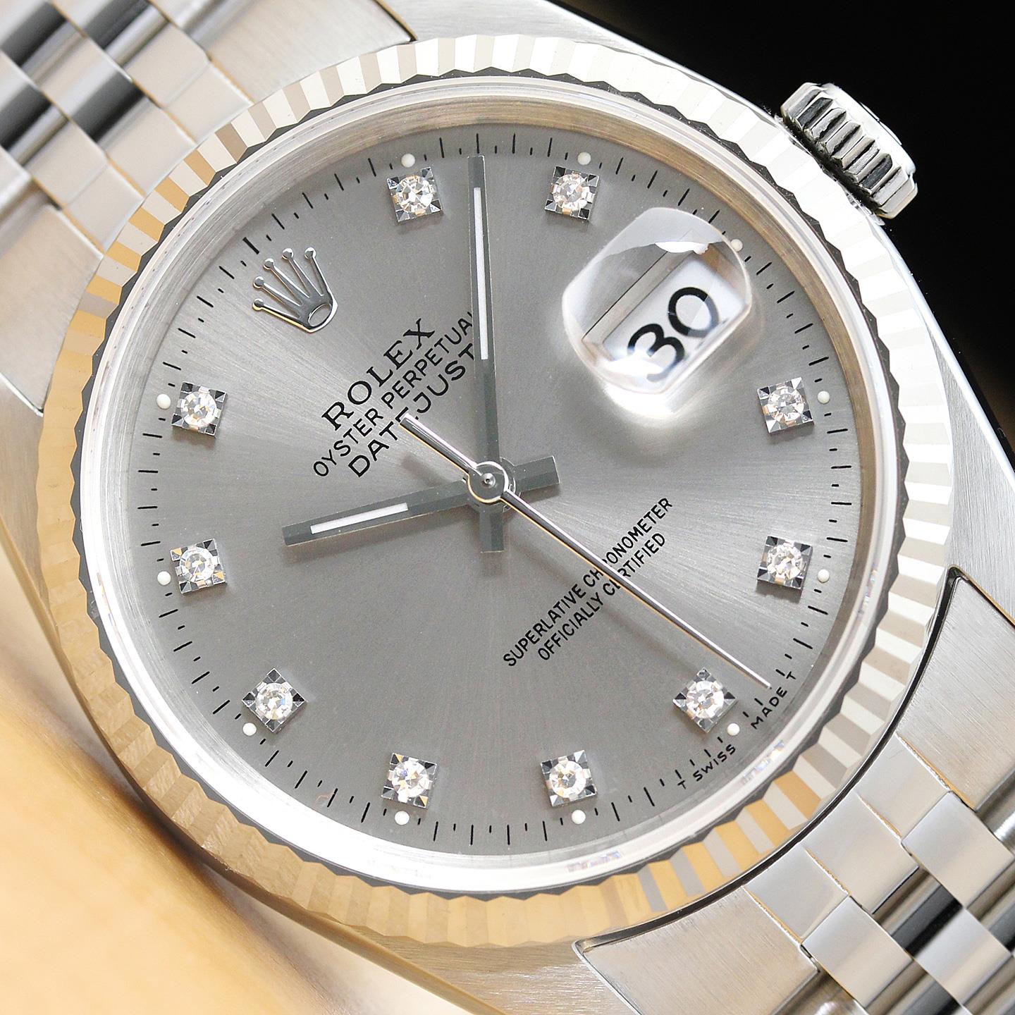 MENS ROLEX DATEJUST FACTORY DIAMOND GRAY DIAL 18K WHITE GOLD STEEL 16234 WATCH