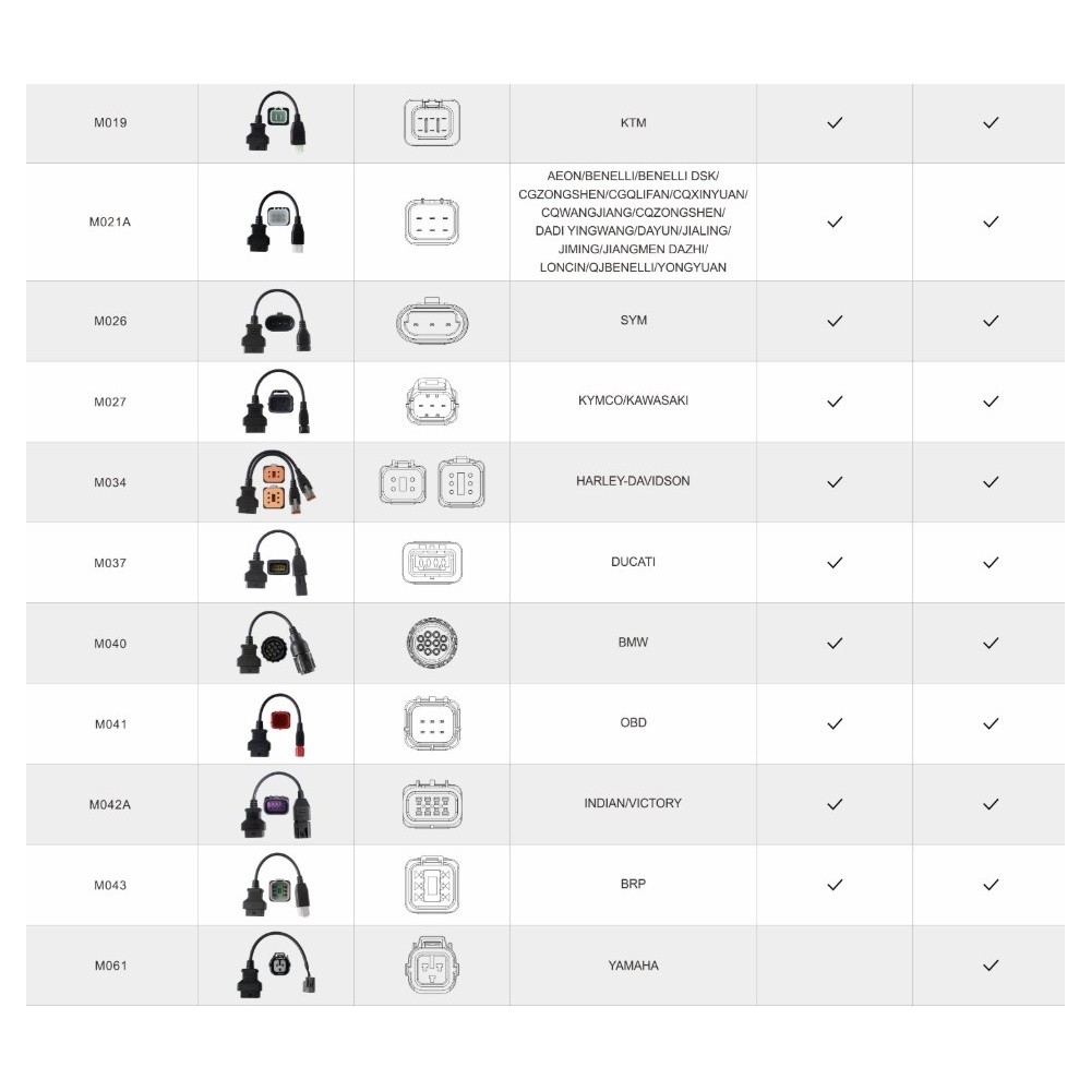 AEON, BAJAJ, BENELLI (DSK), DAELIMMOTOR, HARTFORD, HERO, HONDA, HYOSUNG, KAWASAKI, KYMCO, PGO, ROYAL ENFIELD, SUZUKI, SYM, TGB, TVS, YAMAHA