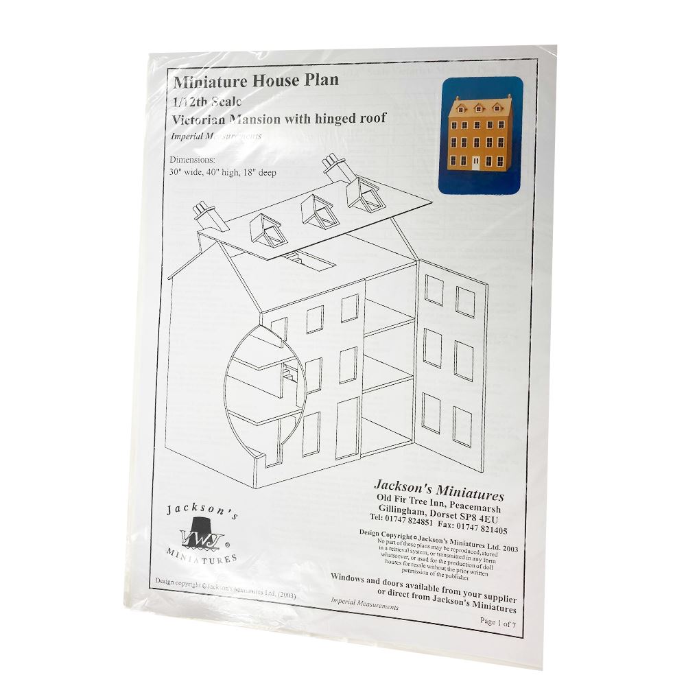 Please note this is a plan and not a house Plans For a 1:12 Scale Victorian Mansion We have altered the appearance of our Victorian mansion to make it more distinguishable from our Georgian mansion. The finished house measures 30 inches wide by 18 inches deep and 40 inches high = 76cm x 46cm x 102cm. The 6 individual rooms measure approximately 11 inches wide by 17 inches deep and 9 inches high. (The second floor - 3rd storey - has a lower ceiling height of 7.3/4 inches).