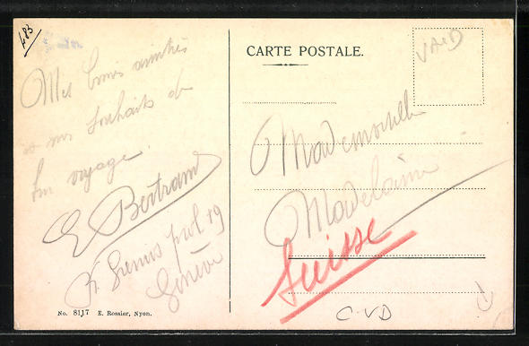 non circulée, le verso écrit, pli au coin l. u., sinon bon état