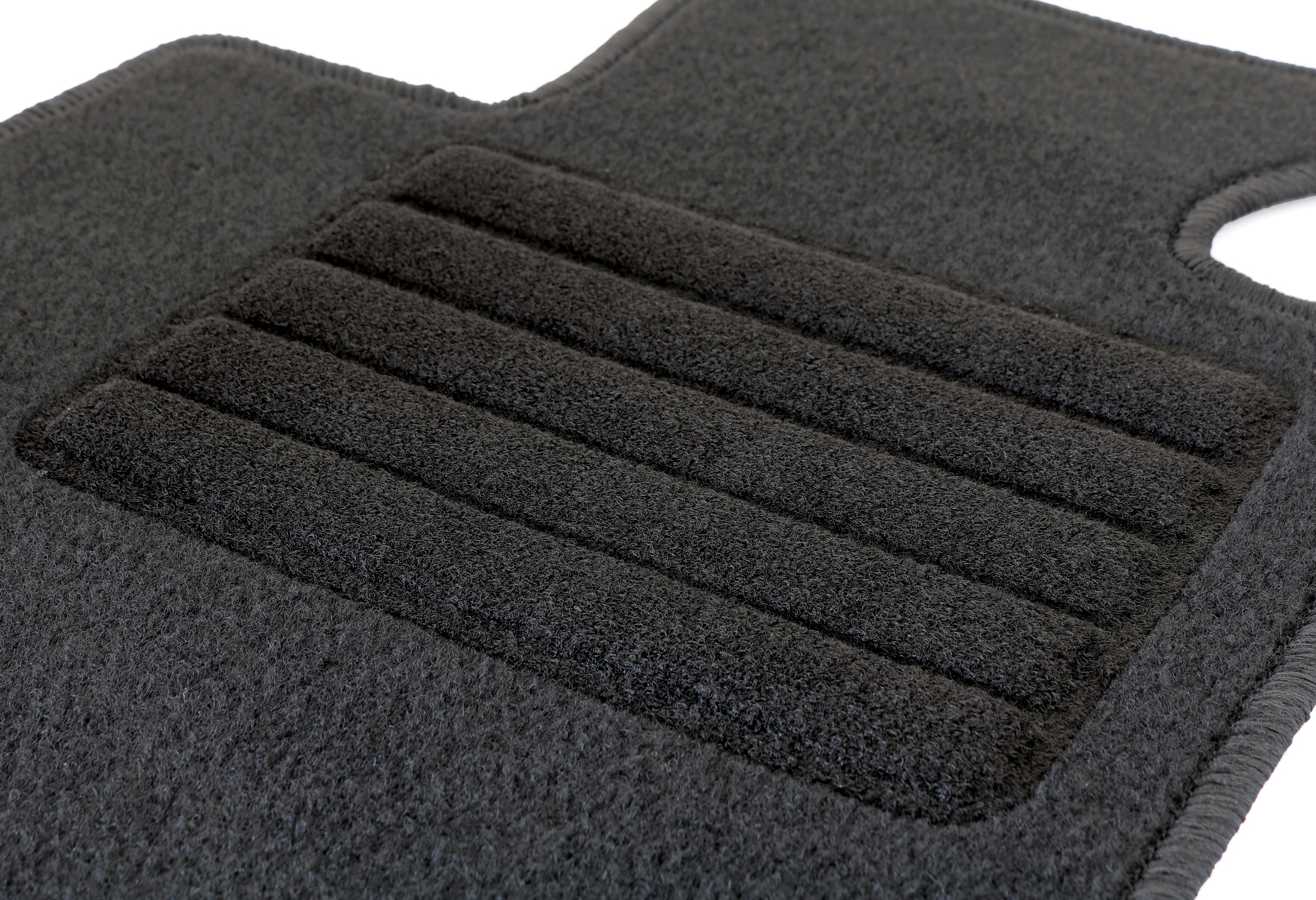 Die Grundfarbe der Fußmatten ist schwarz. Dies passt sich bestens und neutral an die meisten Fahrzeuge an, deren Bodenteppich bereits dunkel gehalten ist. Unauffällig und dezent, aber dennoch hochwertig eingefasst sind die Fußmatten mit schwarzem Glanzgarn gekettelt.