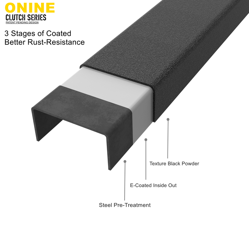 High quality reinforced 16 gauge steel with texture black powder coated maximizes rust protection