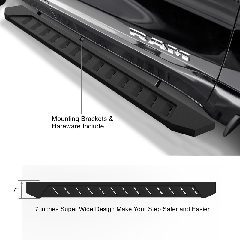 Fit 15-24 Chevy Colorado/Gmc Canyon Crew Cab 7" Black Running Board Side Step