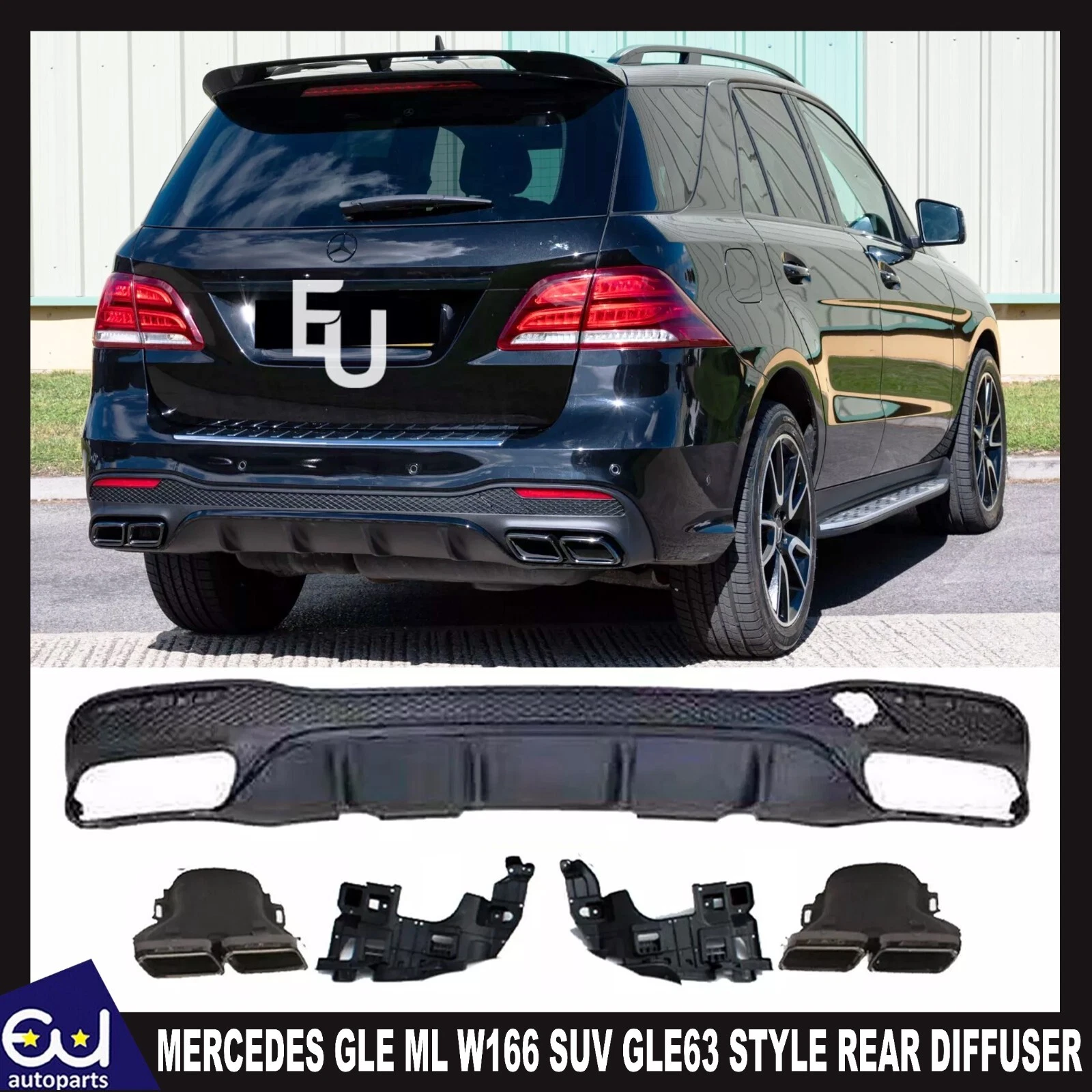 FOR MERCEDES GLE ML W166 SUV GLE63 STYLE REAR DIFFUSER VALANCE & BLACK TAILPIPES