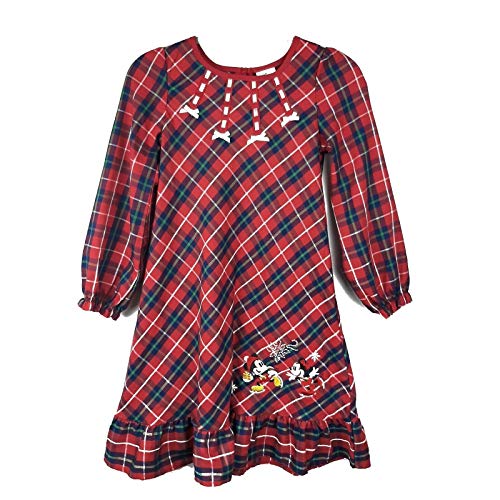 She can spend the holidays with Minnie and Mickey in the adorable holiday nightgown. Features a fun and detailed Minnie and Mickey with snowflakes in colorful embroidery. A rib-knit rounded collar and weaved ribbon stripes accented with silver bows. Elasticized cuffs and a ruffled hemline add to the charm. Constructed of a cozy polyester fabric. Disney Store