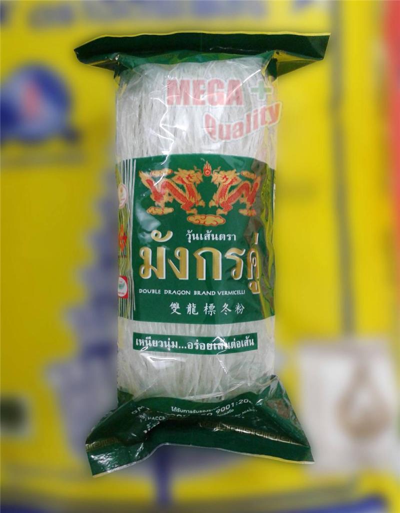 Decription : Double Dragon brand Vermicelli. Authentic quality brand vermicelli 100% bean thread noodles glass noodles from Thailand. - The chewy to eat. - Through The Production Process Standards. - A Delicious Chewy Line Per Line. GMP, HACCP, ISO 9001 :2008. - No Additives - Made of quality materials.