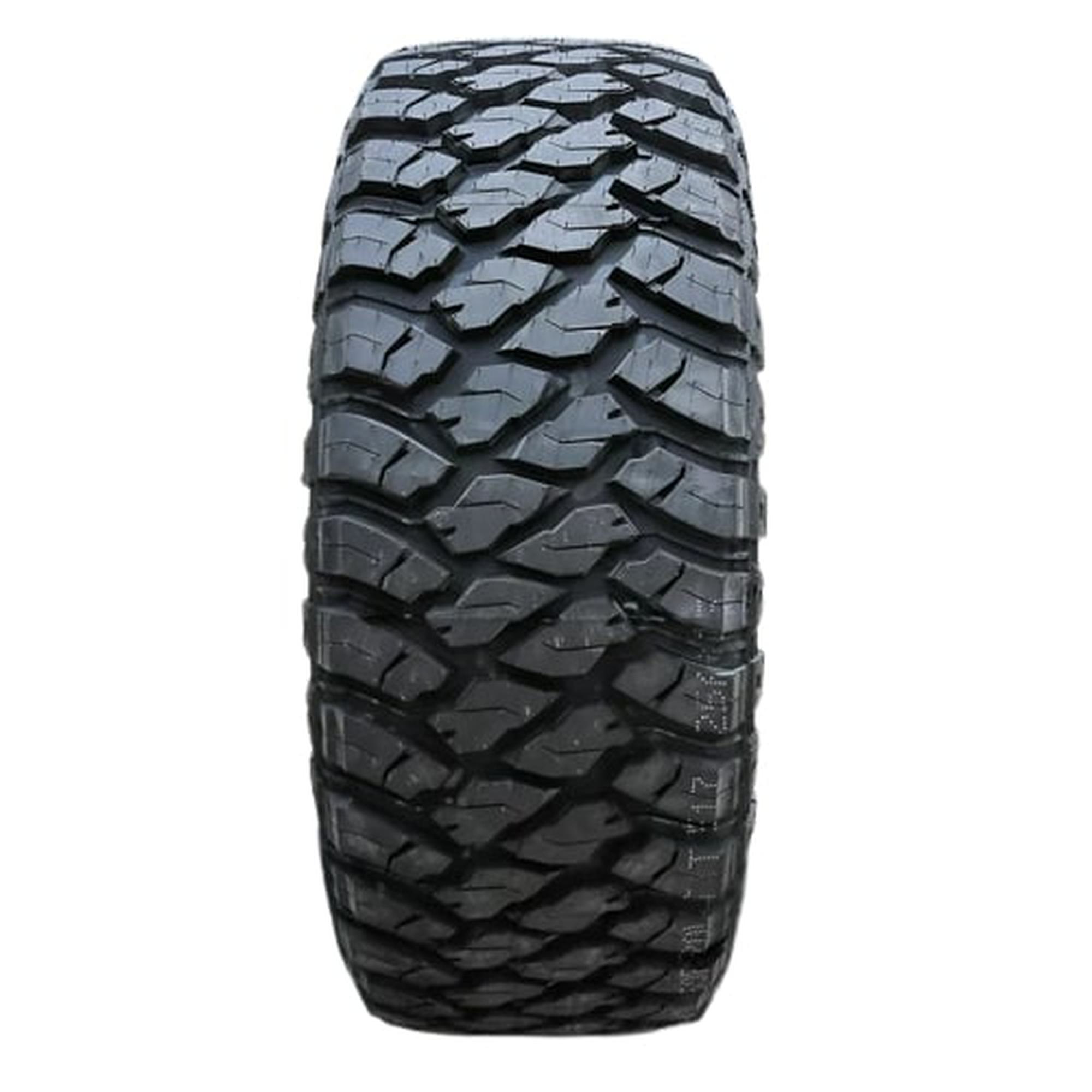 A mud terrain tire, the Roverclaw M/T I from Atlander is designed for use on Jeeps, light trucks, and SUVs that frequently drive off road. Widely spaced grooves and open shoulders force mud, dirt, rocks, stones, water, and other unwanted materials out of the tire for consistent traction and to protect the casing from damage, and the Roverclaw M/T I's aggressive tread pattern allows for solid traction on tough off road terrains such as mud and dirt.