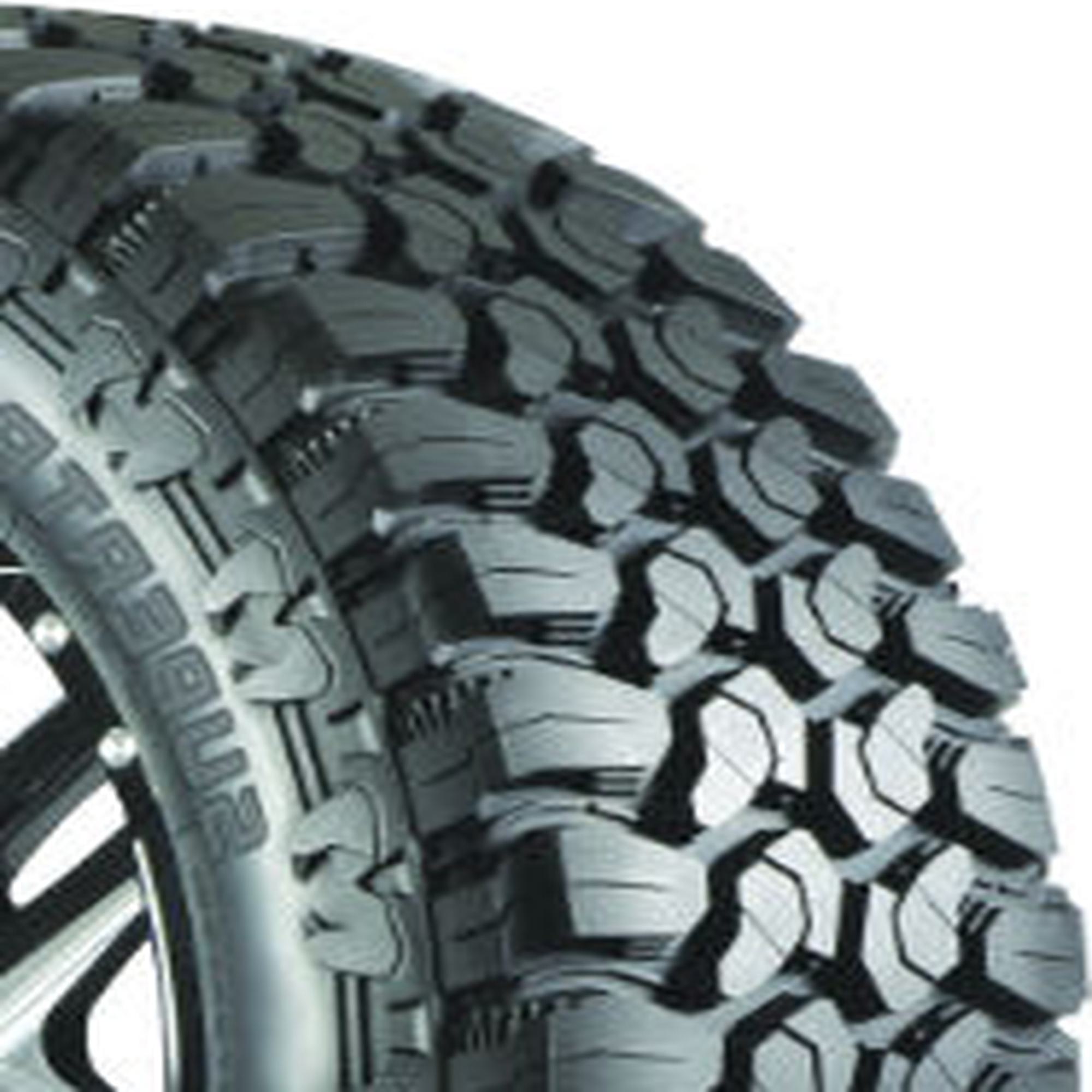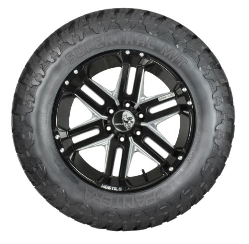 The Supertrac M/T from Pantera is a mud terrain tie that is designed for use on light trucks and SUVs. An optimized rubber to void ratio helps to clean dirt from the tire for consistent traction, and the Supertrac M/T's three layers of polyester cord fabric and high-strength steel belts protect the sidewall from rock and debris punctures. Strategically placed shoulder blocks improve handling and control on unpaved roads, and the Supertrac M/T's angled lateral and longitudinal groove drain water from the tire to boost grip and braking capabilities in slippery conditions.
