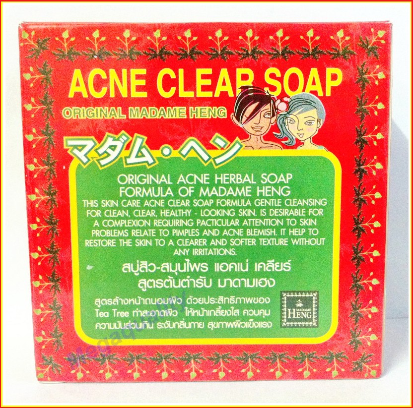 Decription : This skin care acne clear soap formula Gentle Cleansing for clean, clear, healthy- looking skin is desirable for a complexion requiring particular attention to skin problem relate to pimples, acnes and blemishes. It helps to restore the skin to a clearer and softer texture without any irritations. How to use : Wet face and body. Work into herbal soap in hands with water, apply to face, neck, body and massage thoroughly with the wash. rinse off the water. Ingredients : Soap Base, tea tree, Chamomile, Camphor, Perfume |
