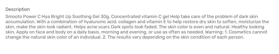 | 6 x Smooto Power C Hya Bright Up Soothing Gel Radiant Skin Helps Acne Scars 30g. |