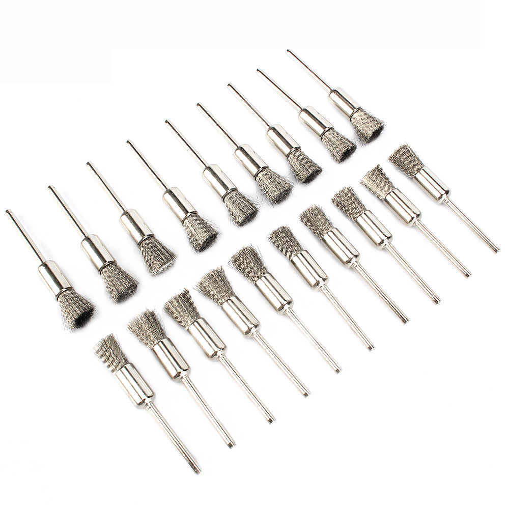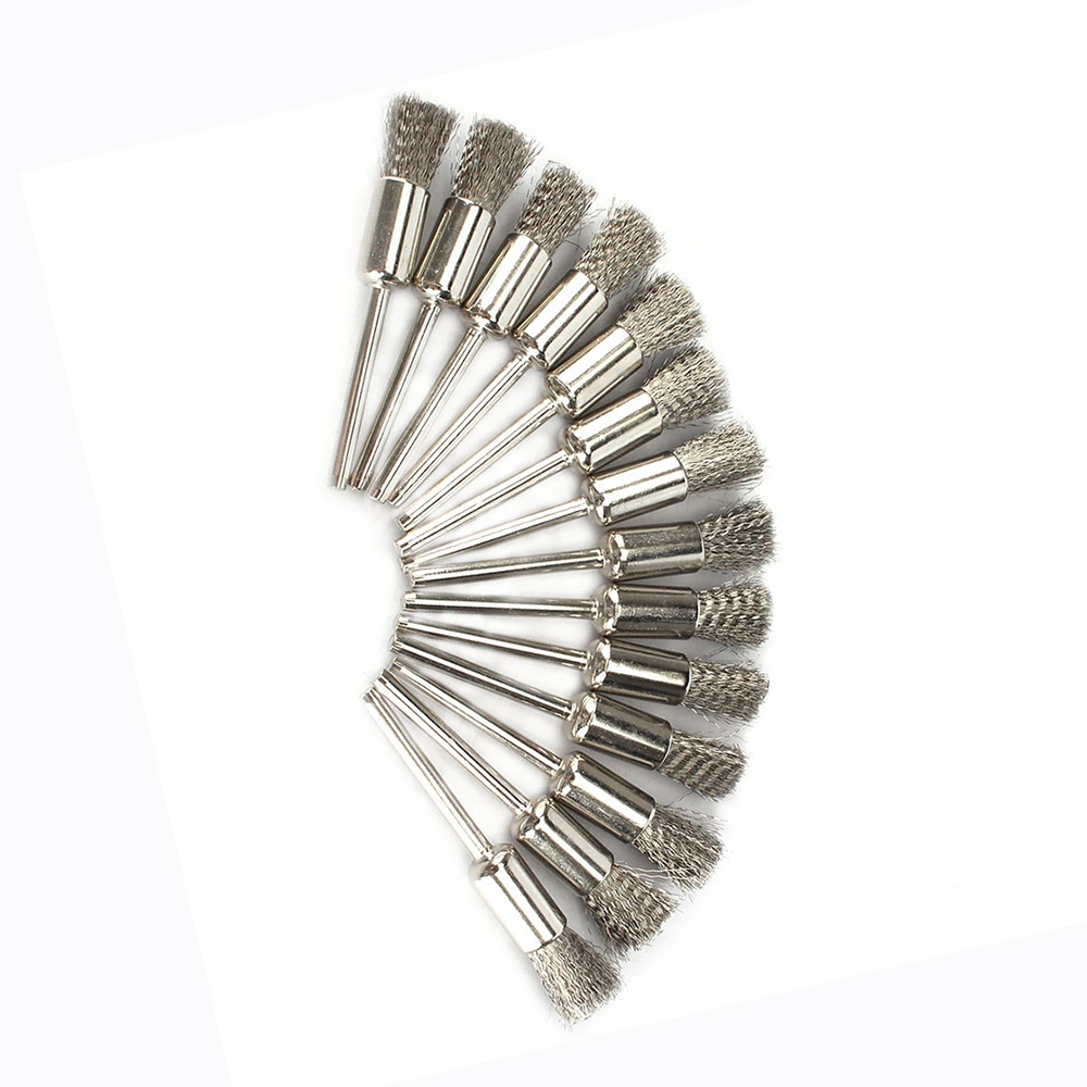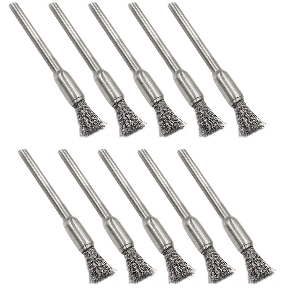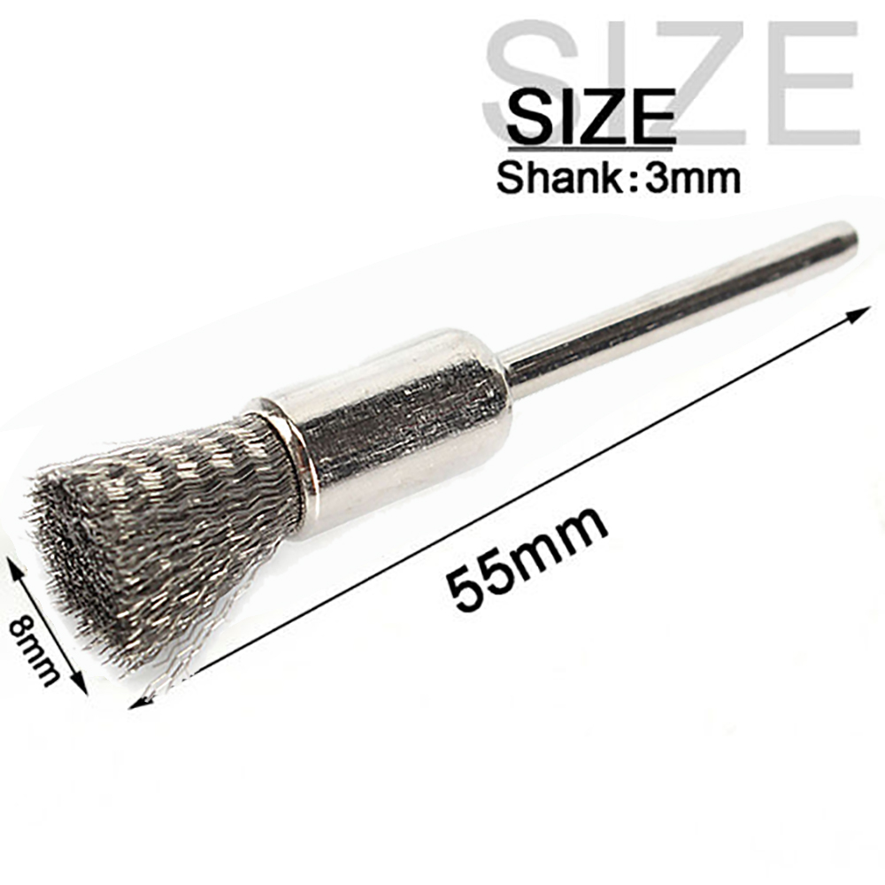 -Stainless Steel Wire Wheel Brushes Kit, pen shape,3mm(1/8 inch) shank diameter, 5mm end brushes.