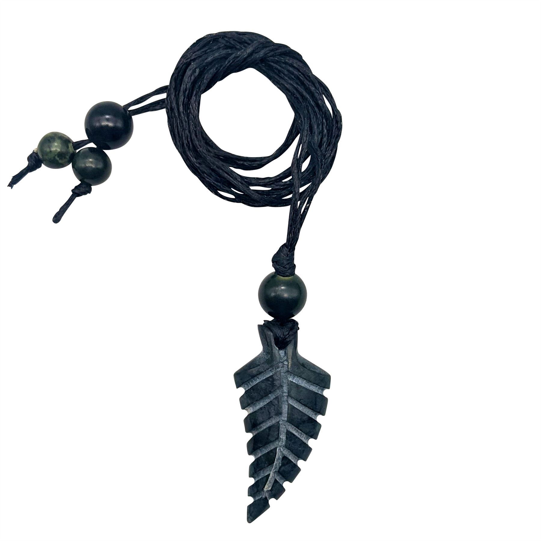 MADE WITH LOVE - Hand carved from genuine black greenstone (nephrite jade). Adjustable black braided cotton cord. Cord Length 84 cm. Pendant height 37 mm, width 20 mm. Weight 6 grams. This type of stone varies in colour. Depending on the lighting, the stone can look lighter or darker. This nephrite jade stone pendant necklace features a pull-string closure allowing you to adjust it. Made with real translucent precious gemstone, these handmade necklaces definitely have that wow factor.