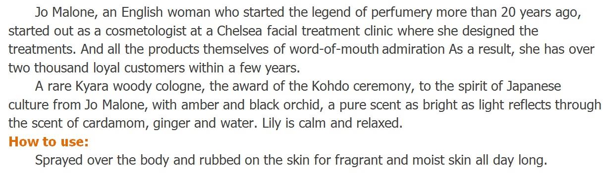 | | | Jo Malone Dark Amber and Ginger Lily Cologne Intense 9 ml or 0.30 fl oz | Shipping Details: - The item will be shipped worldwide next business day after the money has been transferred to my Paypal account and you should received in 2-4 weeks. The item will be posted by airmail from Thailand in well package and send by Non-Registered airmail.
