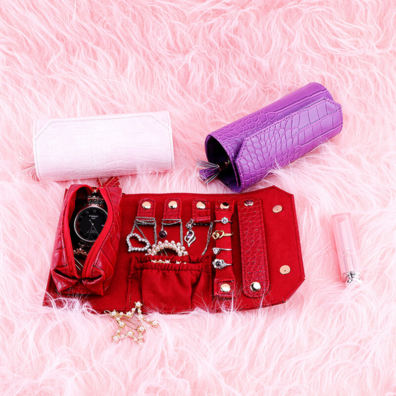 Travel Portable Jewelry Organizer Roll Foldable Jewelry Case Rings Storage Bag