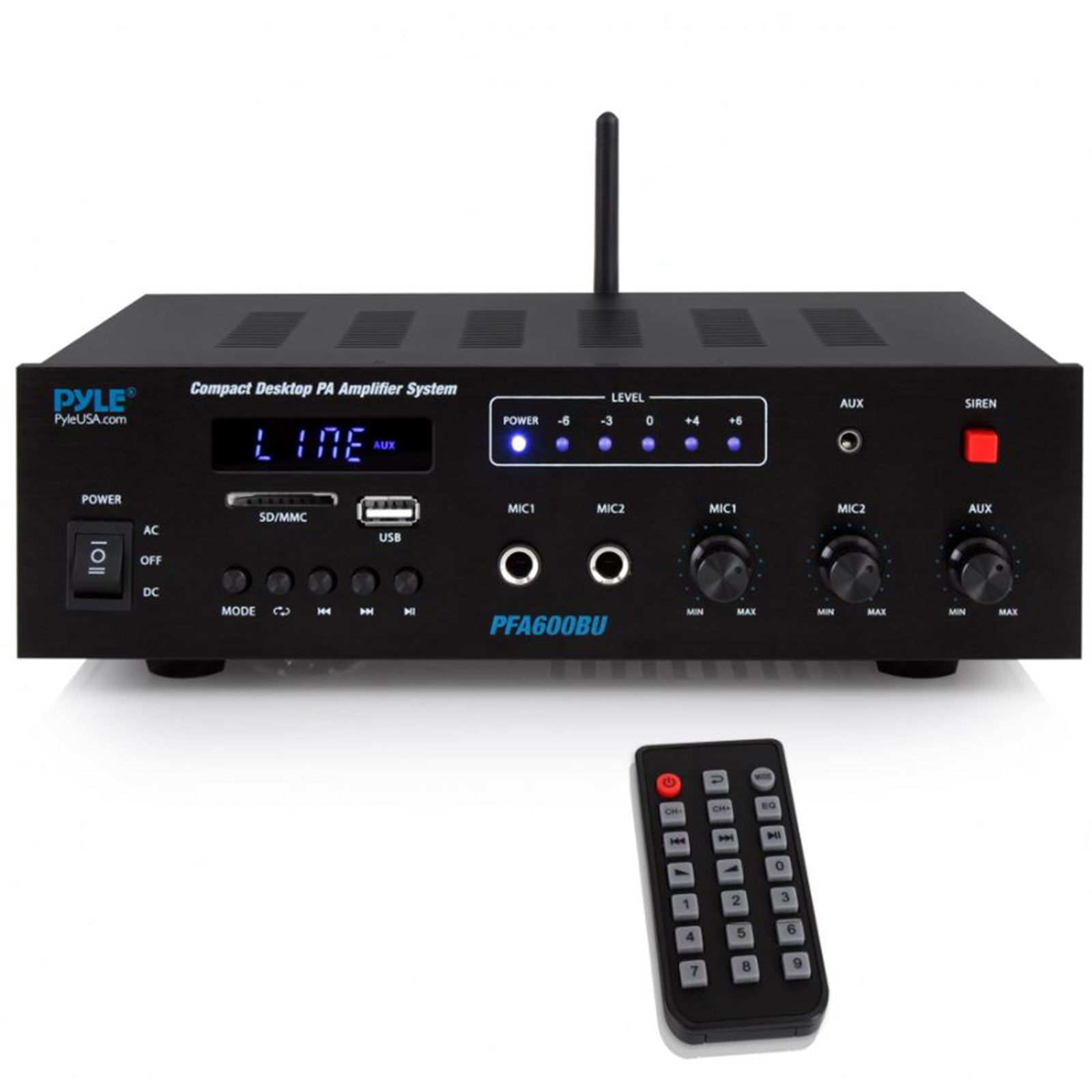 Bluetooth Public Address Amplifier - Compact PA Speaker & Microphone Receiver System with (2) Mic Inputs, MP3/USB/SD Readers, FM Radio (300 Watt) Pyle - Features: