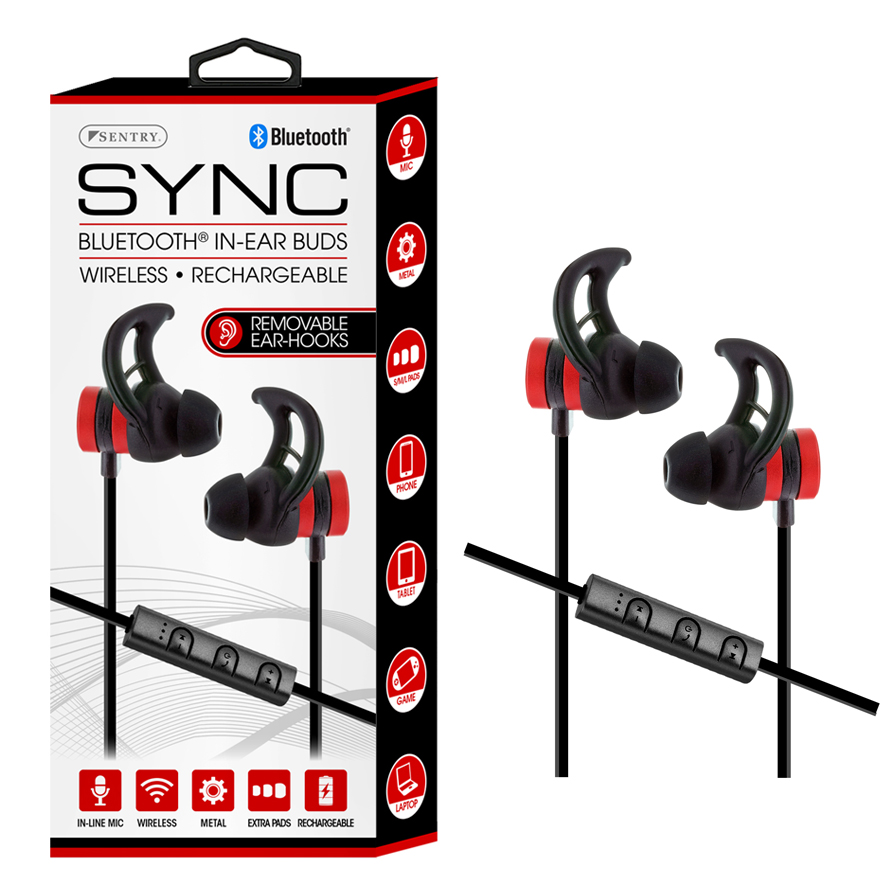 Sentry Sync Bluetooth, Rechargeable Wireless In-Ear Buds with In Line Mic. Includes: deluxe metal buds, extra pads & case.