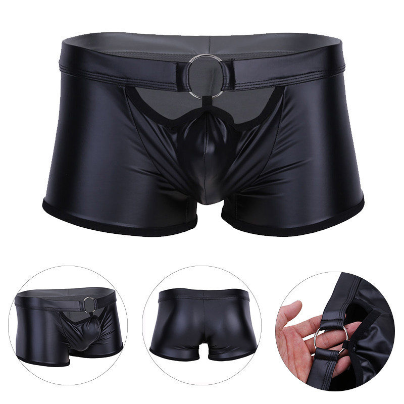 Mens faux leather boxer shorts underwear underpants, smooth touch feeling.