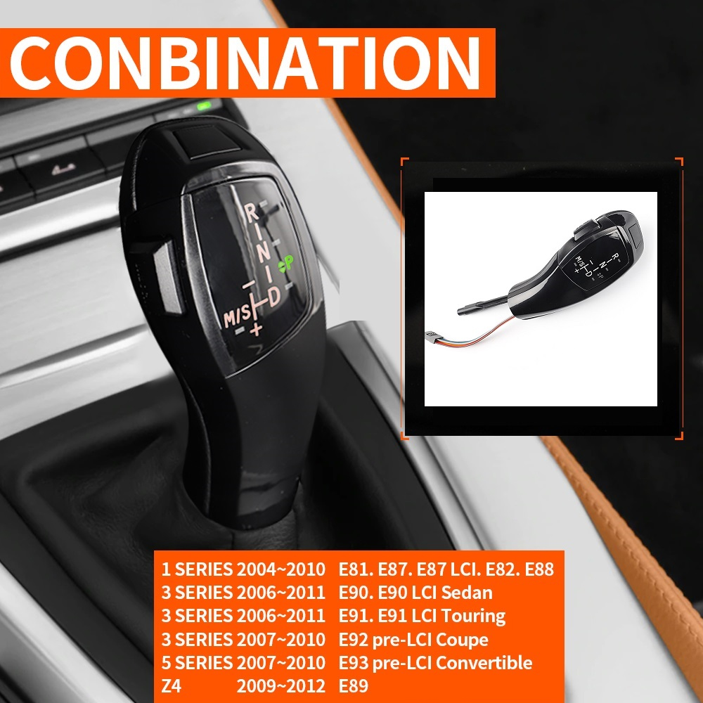 Your package will include 1 shift knob that lights up with green LED when in park, drive, neutral, reverse and M/S mode, and with orange LEDs for all the lettering areas. The shift knob is easy to install with pre-wired adapters provided and attached. Please double check the year of your BMW models to make sure it is left-hand drive with automatic transmission.
