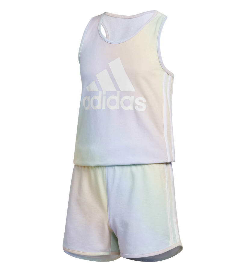 When there are trees to climb and puddles to jump, this Adidas romper ensured girls waste no time. With snaps on the shoulder, it is easy to slip on. The all cotton french terry feels soft to the touch. Youth girls sizing.