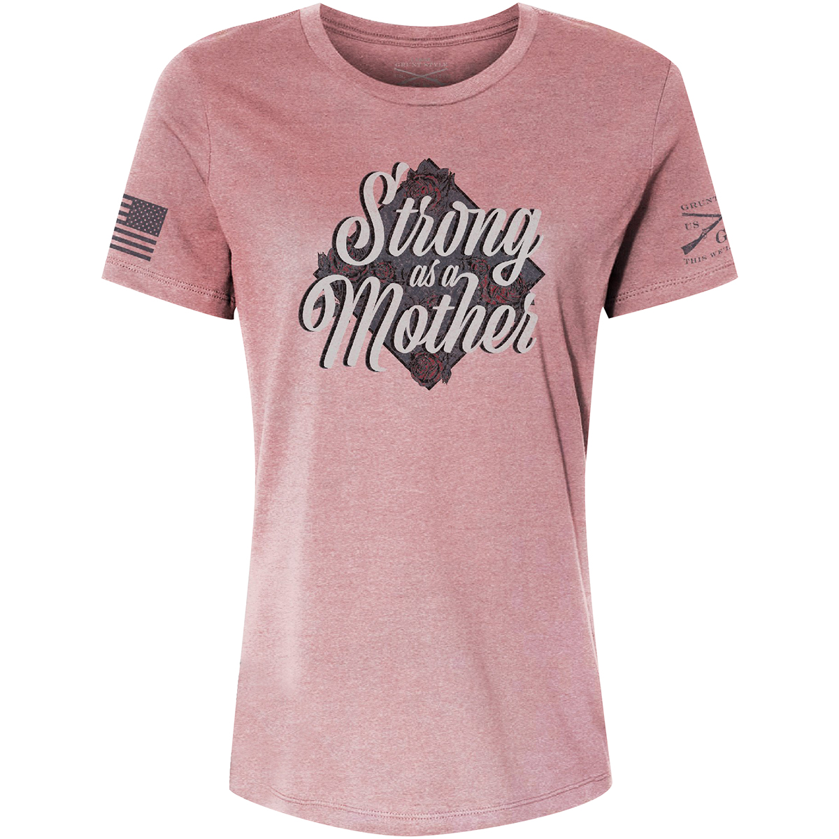 The Grunt Style Women's Relaxed Fit Strong As A Mother T-Shirt is crafted with 90% cotton and 10% polyester for soft, all-day comfort and wear. It features a tagless, itch-free design and ribbed collar that won't lose its shape. It also has double-needle stitching for durability. There's no better way to show your American pride than sporting your favorite shirt from Grunt Style.