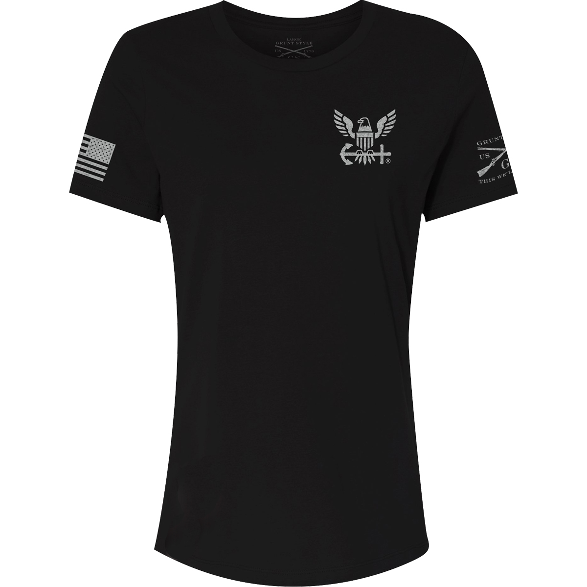 The Grunt Style Women's Relaxed Fit USN - Homeward Bound T-Shirt is crafted with 100% combed ring-spun cotton for soft, all-day comfort and features a tagless, itch-free design. It also has a ribbed collar that won't lose its shape. There's no better way to show off your American pride than sporting your favorite shirt from Grunt Style.
