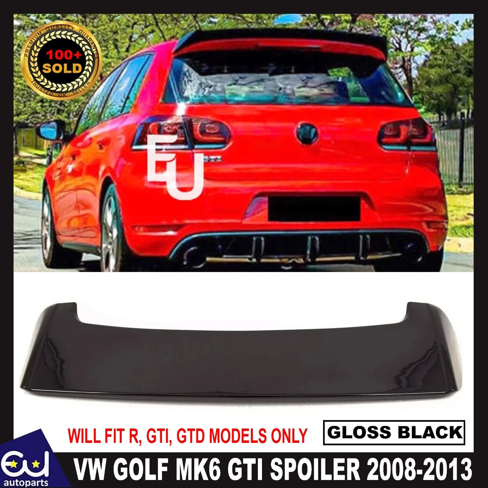 FOR VW GOLF MK6 GTI GTD GOLF R STYLE REAR ROOF SPOILER 2008-2013 GLOSS BLACK