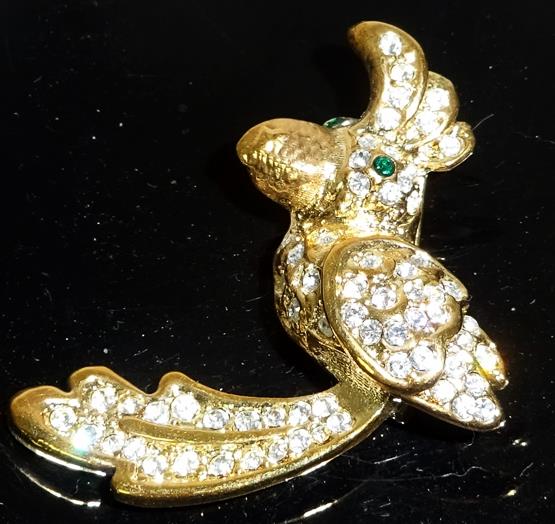 Vintage Pave Set Crystal Rhinestone Cockatoo Bird Brooch Pin Signed RomanYou are bidding on a Brooch purchased at a Central Ohio Estate Auction. I believe it to be circa 1990s or Earlier.It Measures Approximately 1 1/4" Across x 1 7/8" High - Signed ROMANIn Excellent Condition.See Images for Additional Details. ~ The Item Shown is the Exactc Item You Will Receive.