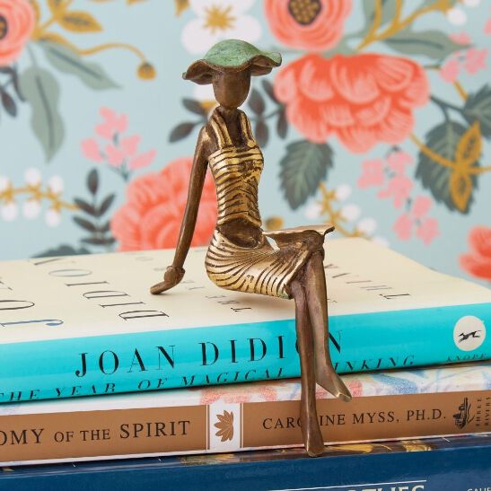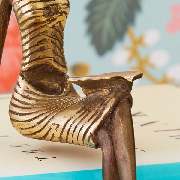 * Woman reading a book metal figurine * Bronze metal sculpture * 4" length, 4" width, 6" height * Inspired from body positivity * Made using the traditional lost wax technique * Each product is handcrafted and is unique * Modern adaptation of african art * Made in Burkina Faso --------------------------------- Artisans in Burkina Faso cast each sculpture using the lost wax method. In lost wax method, the shape of the desired figurine is first made in wax and then coated it with clay. After the clay figure is dried, molten bronze is poured into the mould. The hot liquid bronze melts the wax and fills the shape of the desired figurine. This technique of lost wax is one of the oldest forms of bronze casting. The lost wax technique is a very detailed and intense technique. The technique and skills are passed down through generations from their fathers and grandfathers. The figurines reflect the everyday african life that artisans see around them. Our curated figurines from Burkina Faso speak to the modern woman.
