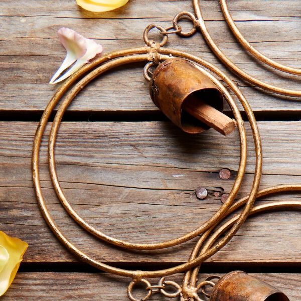 ●Circular bells wind chime ●38" length and 5" width ●Handmade from recycled metal ●Crafted by traditional metal artisans of Moradabad. Moradabad is the largest metalware hub of India. ●Made in Moradabad, India ---------------------- Moradabad city in Uttar Pradesh is the biggest metalware hub in India. It is known for its brassware industry and is locally called Peetal Nagri, meaning brass city. The city was originally famous for brasswares and over time other metals like iron and aluminium have been introduced. Today the cluster makes functional wares for everyday such as planters, wind chimes, candle holders, lanterns and various home decor items.