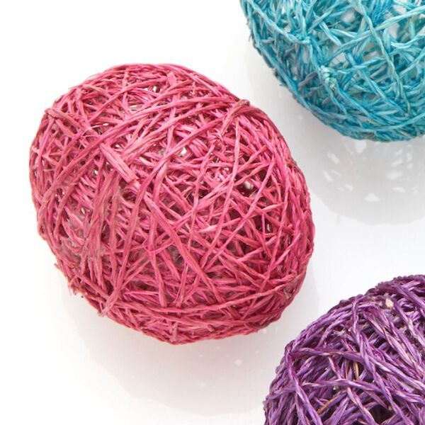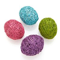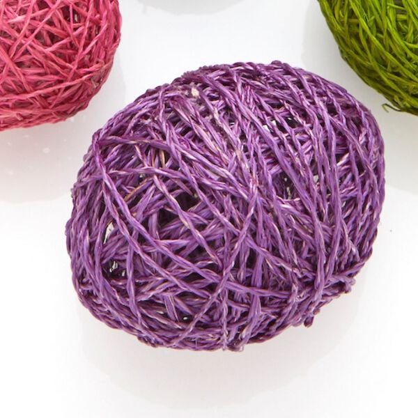 Set of pink, blue, green and purple eggs 1.5" length, 1.5" width and 2" height Festive easter decor Handcrafted from abaca fibers Made in Philippines ---------------------------- Filipinos have been making natural fiber products from a long time. They hand weave bird houses, bird feeders, ornaments and festive decor from natural fibers like buri, raffia, coconut and abaca. Buri is the most common palm grown in the country. The leaves of the palm tree have the most commercial value. Buri is a very sustainable source as the tree continues to grow even after the leaves are used for production. The natural fiber extraction from the palm tree is a laborious process and is a skill gained over time. These natural fiber products provide opportunities for economic development in Philippines.