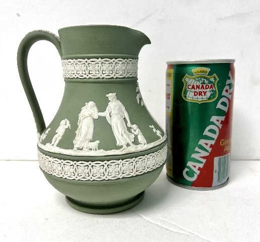 Vintage MCM Wedgwood England Cream on Sage Green Jasperware 6” Etruscan Jug 1954