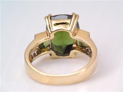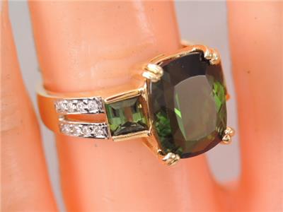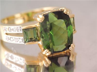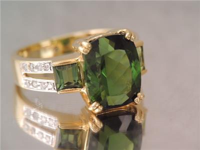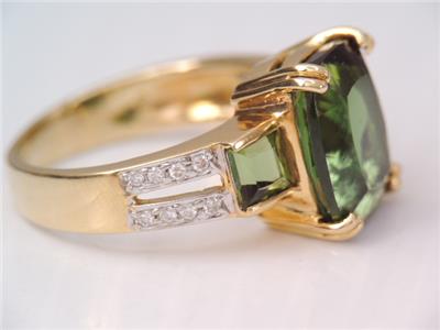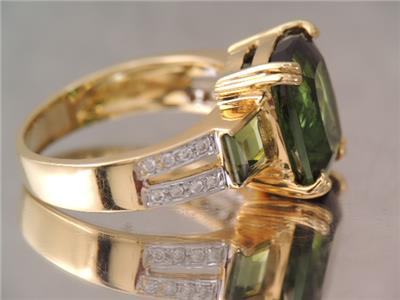 DESCRIPTION: THISIS A BEAUTIFUL 750 SOLID 18K GOLD DIAMOND & GREEN CHROME DIOPSIDE RING IN GREAT CONDITION. TOP OF RING A LARGE GORGEOUS EMERALD CUT 11 MM BY 9 MM FACETED GREEN CHROME DIOPSIDE STONE PRONG SET ALONG WITH TWO 4 MM BY 4 MM CHANNEL SET GREEN CHROME DIOPSIDE ACCENT STONES WITH 16 SPARKLING WHITE 1 POINT DIAMONDS SET DOWN THE BAND IN DOUBLE ROW DESIGN. RING IS A SIZE 5 1/2 . PLEASE SEE ALL PHOTOS