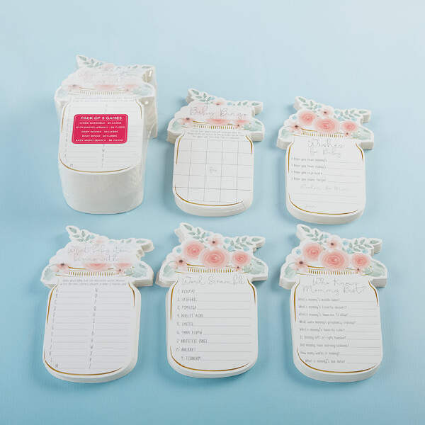 Floral Mason Jar Baby Shower 5 pack game set (30 sheets each)
