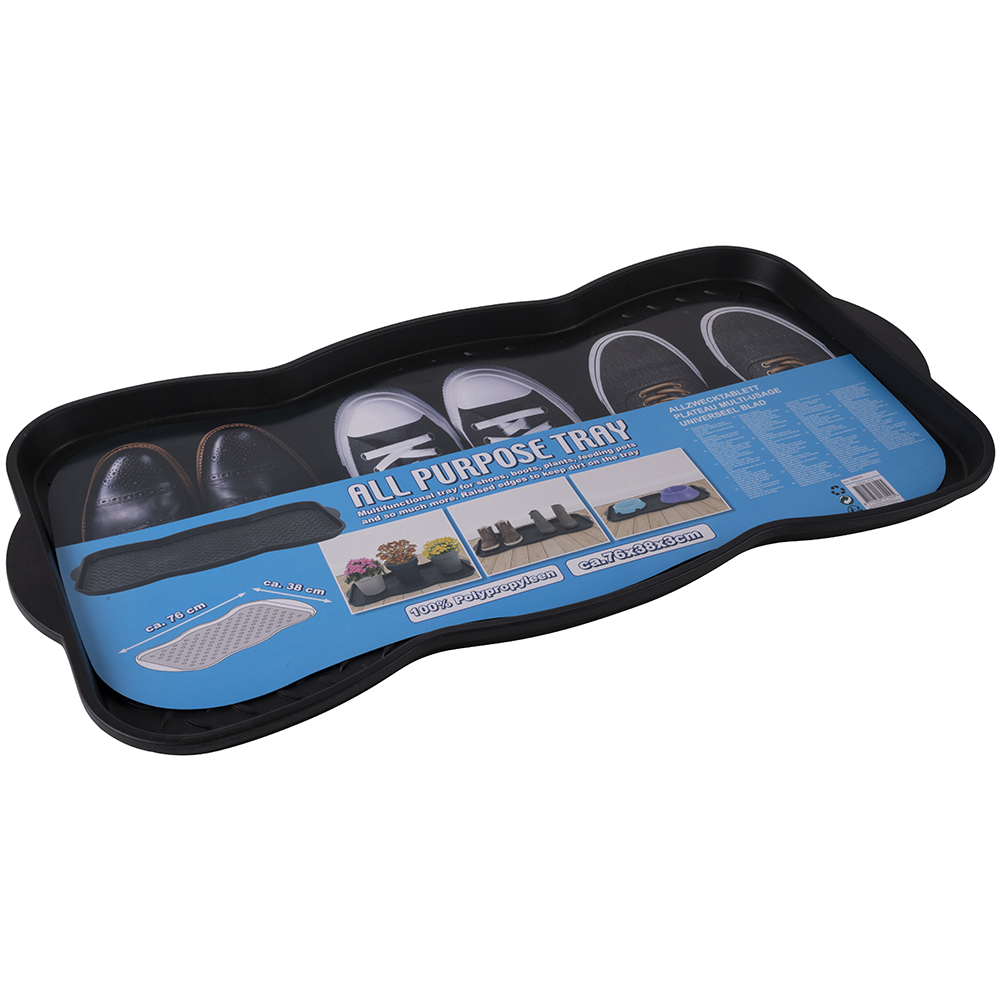 Description: Multi Purpose Plastic Shoe Tray Wellies Boots Garden Plants Pet Home Door Tray Utility Nonslip Indoor Outdoor Features: - Manufactured from Poly Propylene - Lightweight - With anti slip grips - Can be used for shoes, boots, paint tins, plant pots, in your car, workshop, home etc - Ideal for Shoes in garden - Pets at home - Outdoor activities, etc. - Indoor and car boot - Size (Length x Width x Height): L-75cm x W-38cm x H-3cm