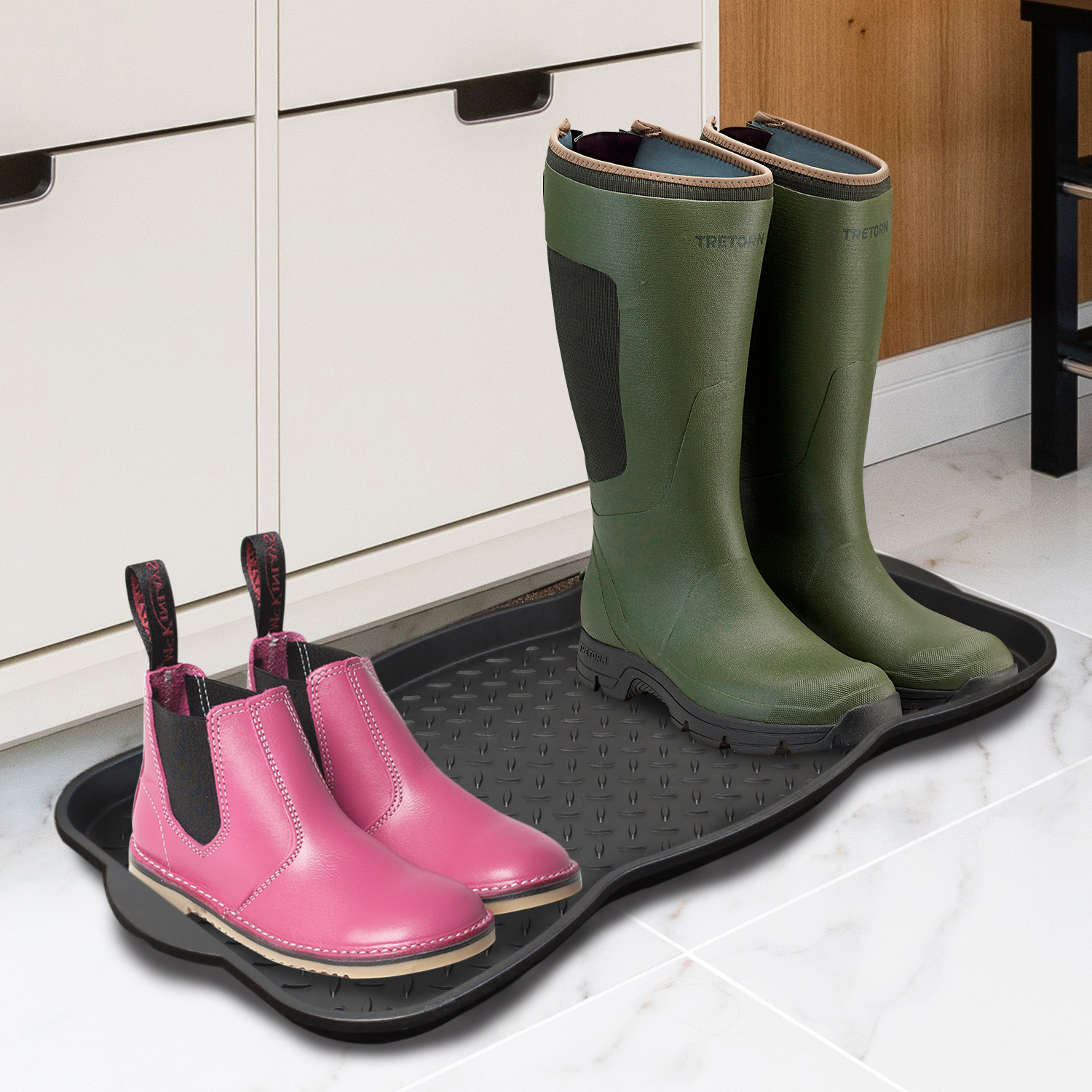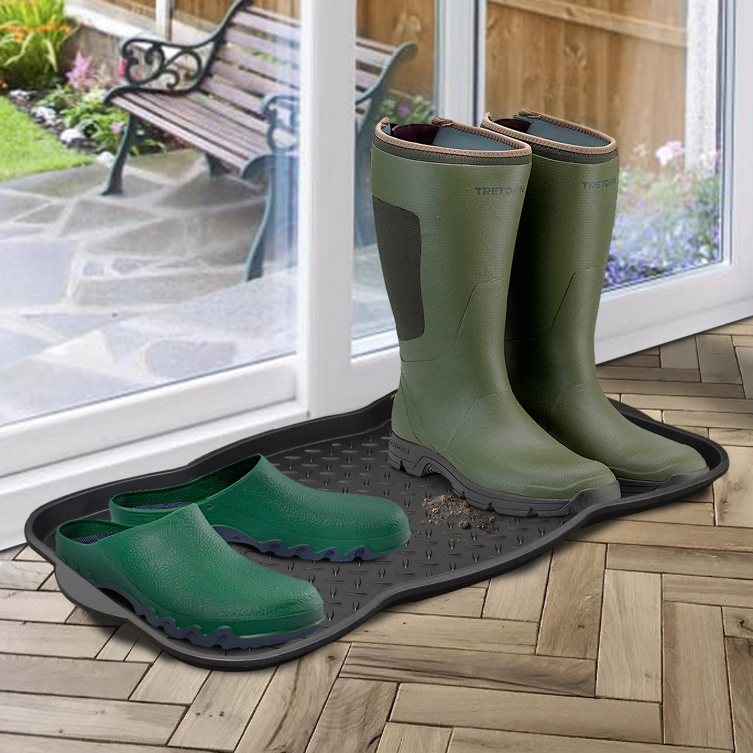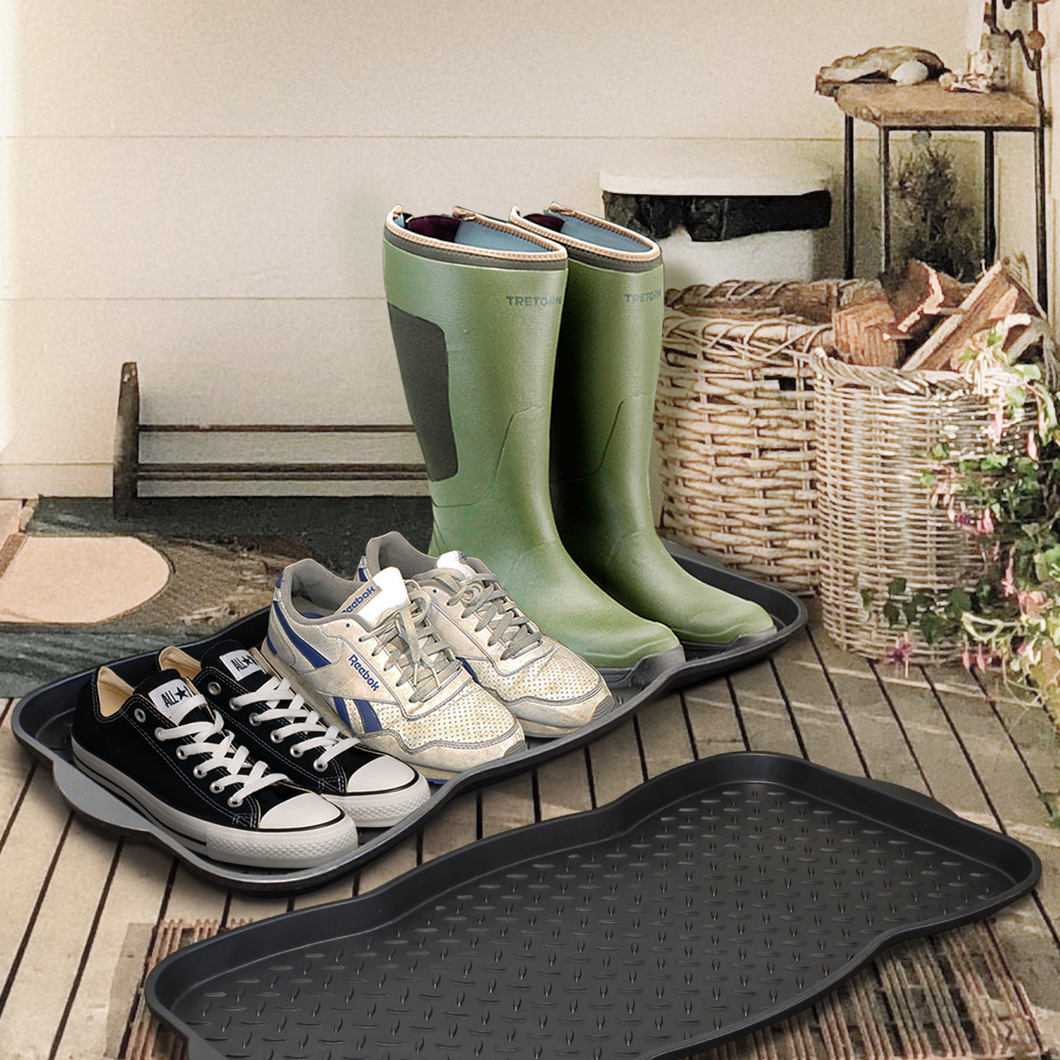Description: Multi Purpose Plastic Shoe Tray Wellies Boots Garden Plants Pet Home Door Tray Utility Nonslip Indoor Outdoor