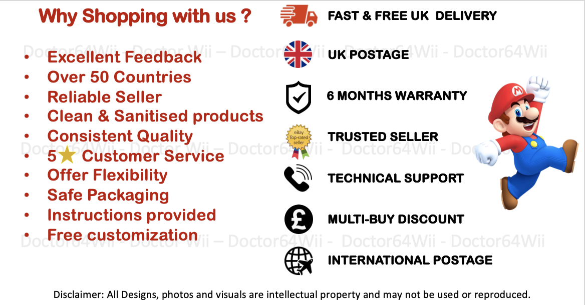 All our items have been thoroughly cleaned and sanitised with anti-viral disinfectant and come in excellent working condition with the confidence of a shiny console free of stains and discolouration. |