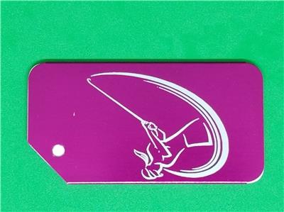 Female golfer Luggage Tag, Back Pack tag, Pet Crate Tag, I.D. Tag made from durable anodized aluminum with a slot in one end for a attachment cable. Tag size is approximately 1 3/4" x 3".