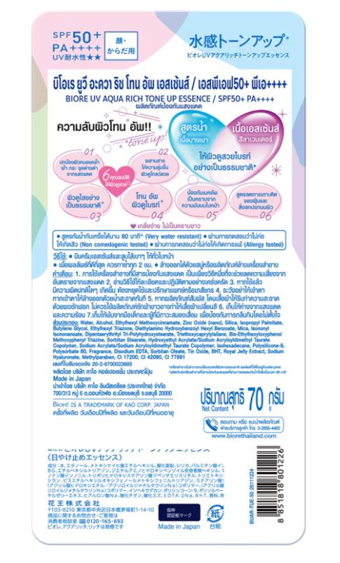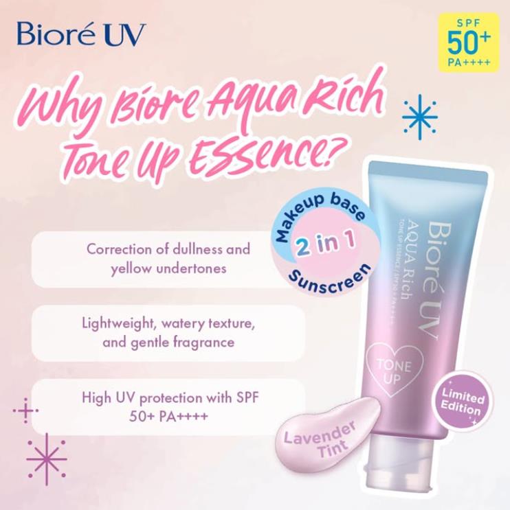 | | | Biore UV Aqua Rich Tone Up Essence Sunscreen SPF50+ PA++++ Lavender 70g |  |  |  | | | | Brand : Biore Product Size : 70ml. Condition : Brand new & Never used