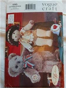 Includes patterns and instructions for two 20" bears with contrast paws and embroidered nose, mouth, paws and soles.